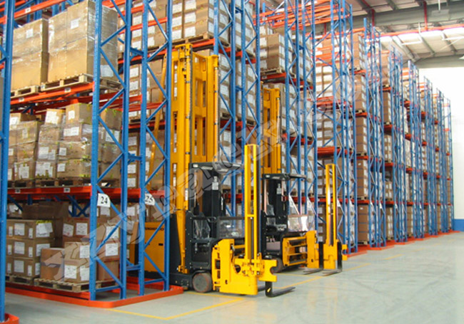 架同為橫梁式貨架,只是系統(tǒng)的其他部分有所區(qū)別,如通道寬度,配合三向叉車(chē)貨高位揀選叉車(chē)用車(chē)等
